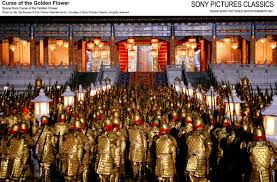 In comparison with Zhang Yimou’s other films, “Curse of the Golden Flower” is not a martial arts film like “Hero” or “House of Flying Daggers” despite a sword fighting scene at the beginning between Prince Jie and the Emperor, and the final battle sequence at the end when the rebellion starts with thousands of soldiers lead by Prince Jie.